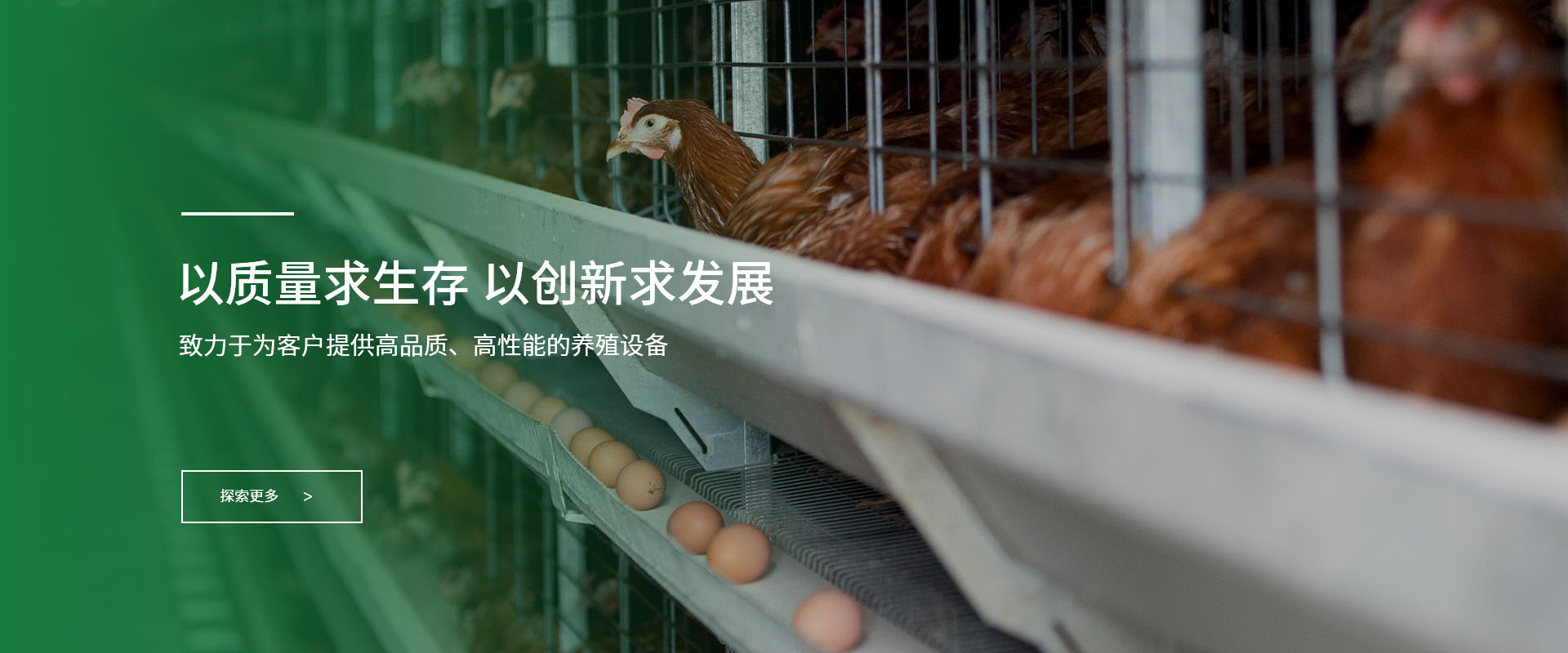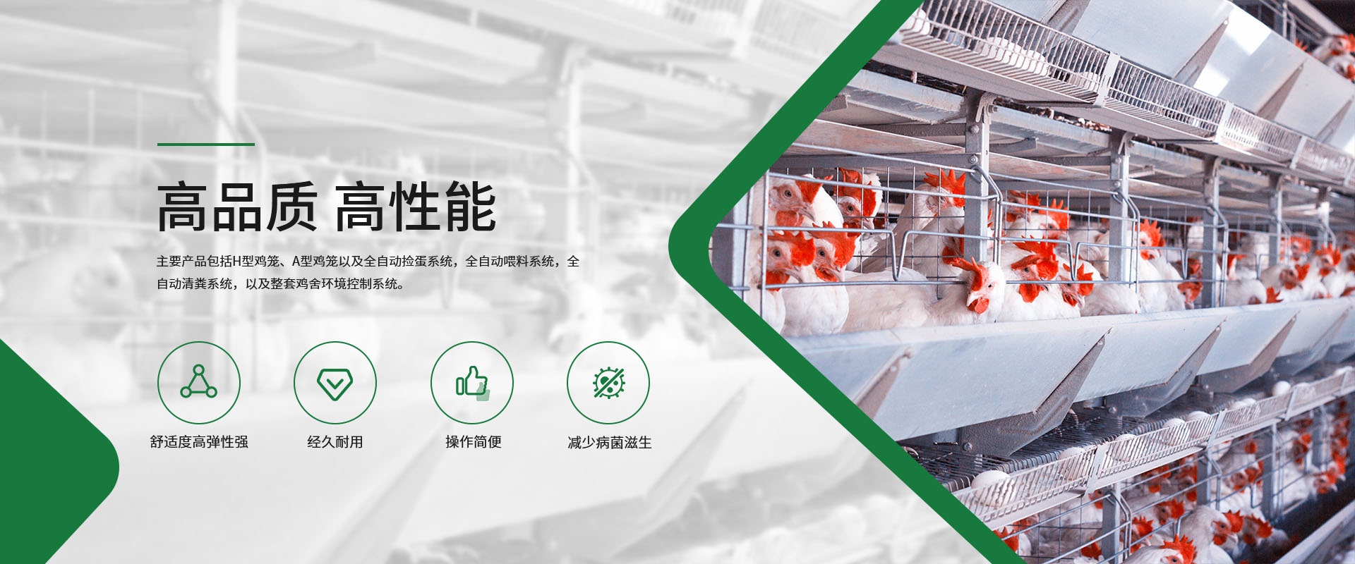 公司专注于养殖设备的研发、生产与销售,主要产品包括H型鸡笼、A型鸡笼以及全自动捡蛋系统,全自动喂料系统,全自动清粪系统,以及整套鸡舍环境控制系统。我们的H型蛋鸡笼,采用热镀锌材质跟镀铝锌合金丝材质,不仅舒适度高弹性强,而且经久耐用;滑动门设计操作简便,便于老鸡的淘汰